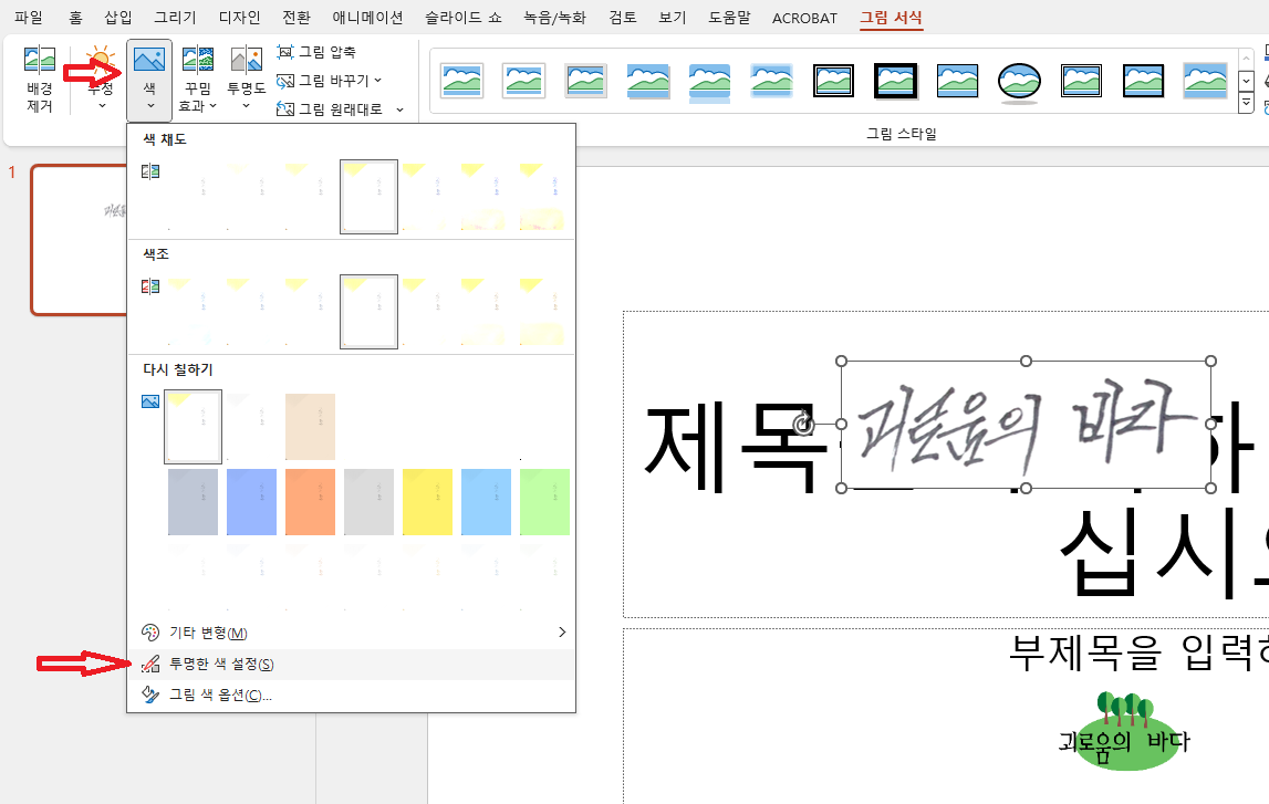 5 그림이 선택된 상태에서 색 -> 투명한 색 설정